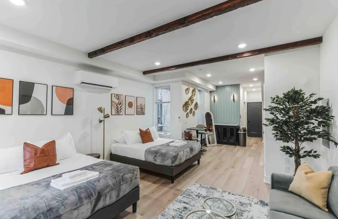 An equipped kitchen is provided at Large Studio W 2 Beds And Balcony Philadelphia, PA train station is 2.6 km away, and 16th St &Thompson St bus stop is in the vicinity of Large Studio W 2 Beds And Balcony.